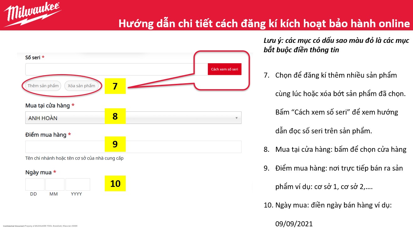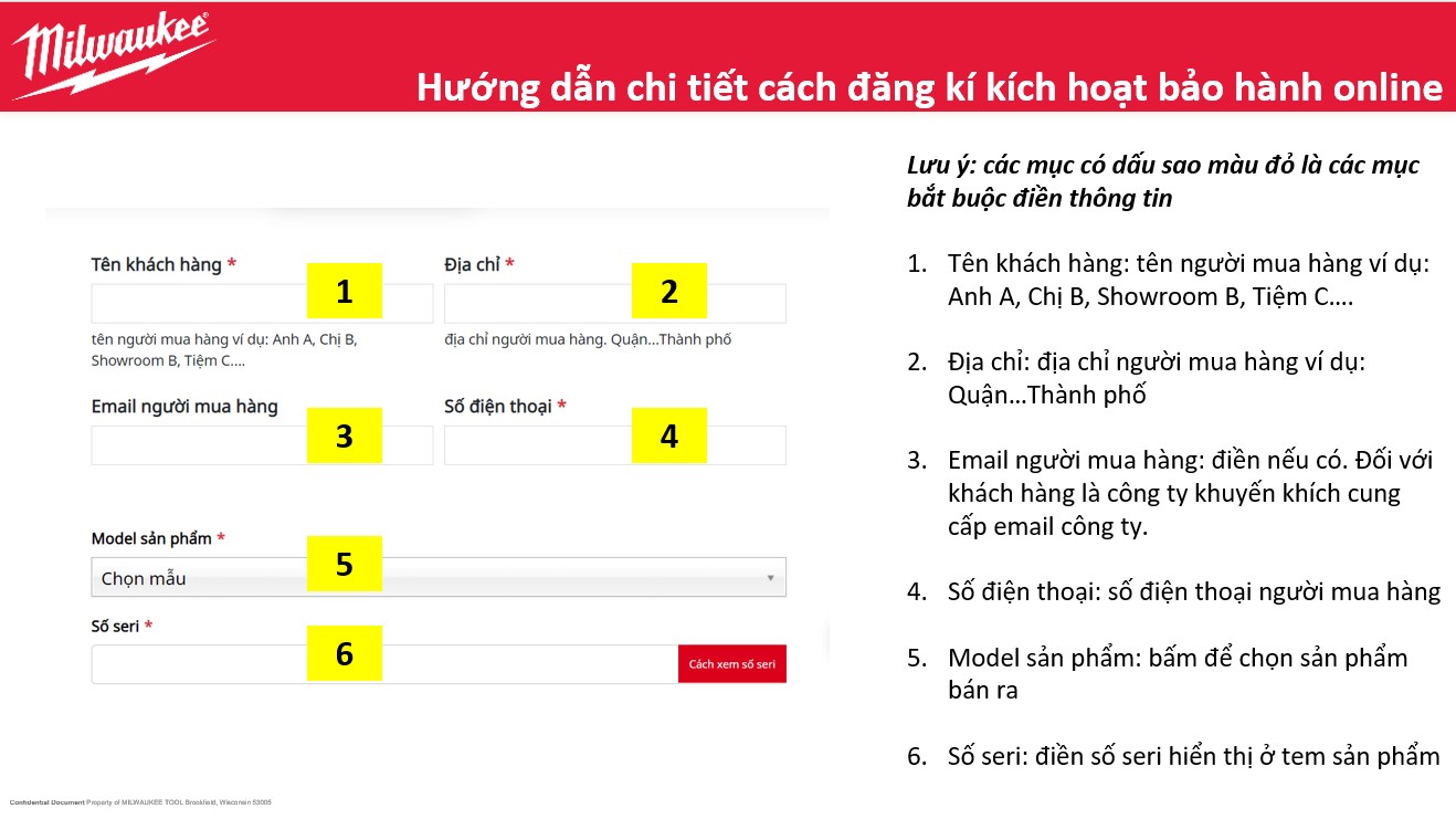 - Chưa có thông tin đăng kí bảo hành điện tử thông qua địa chỉ web https://www.milwaukeetool.com.vn/ warranty-registration/