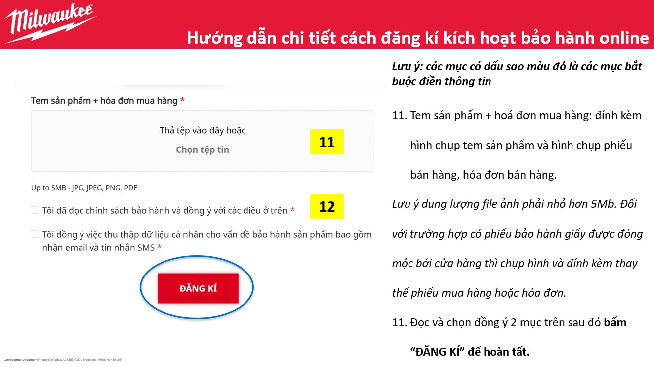 - Có hóa đơn mua hàng hợp lệ tại các đại lý ủy quyền của Milwaukee Việt Nam hoặc đã đăng kí bảo hành điện tử thành công.